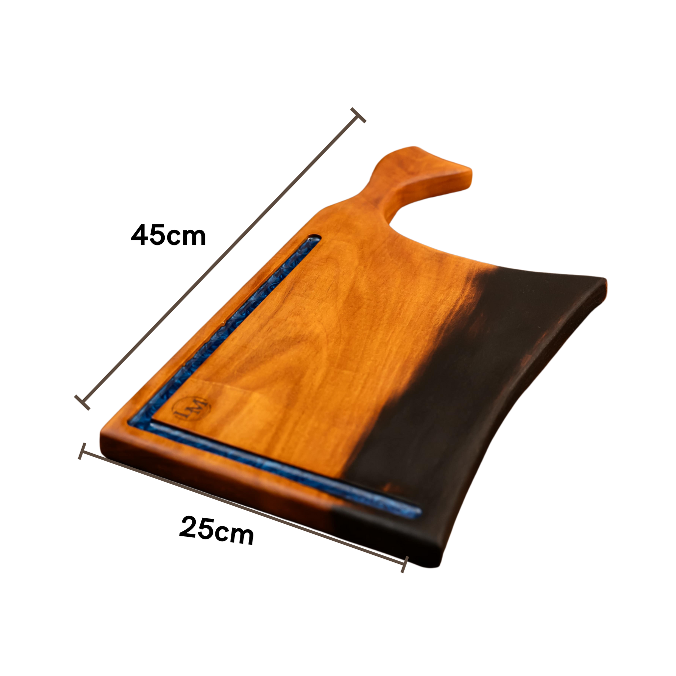 Esta tábua apresenta uma faixa carbonizada na "lâmina", proporcionando não apenas um toque estético, mas também reforçando a durabilidade da peça.