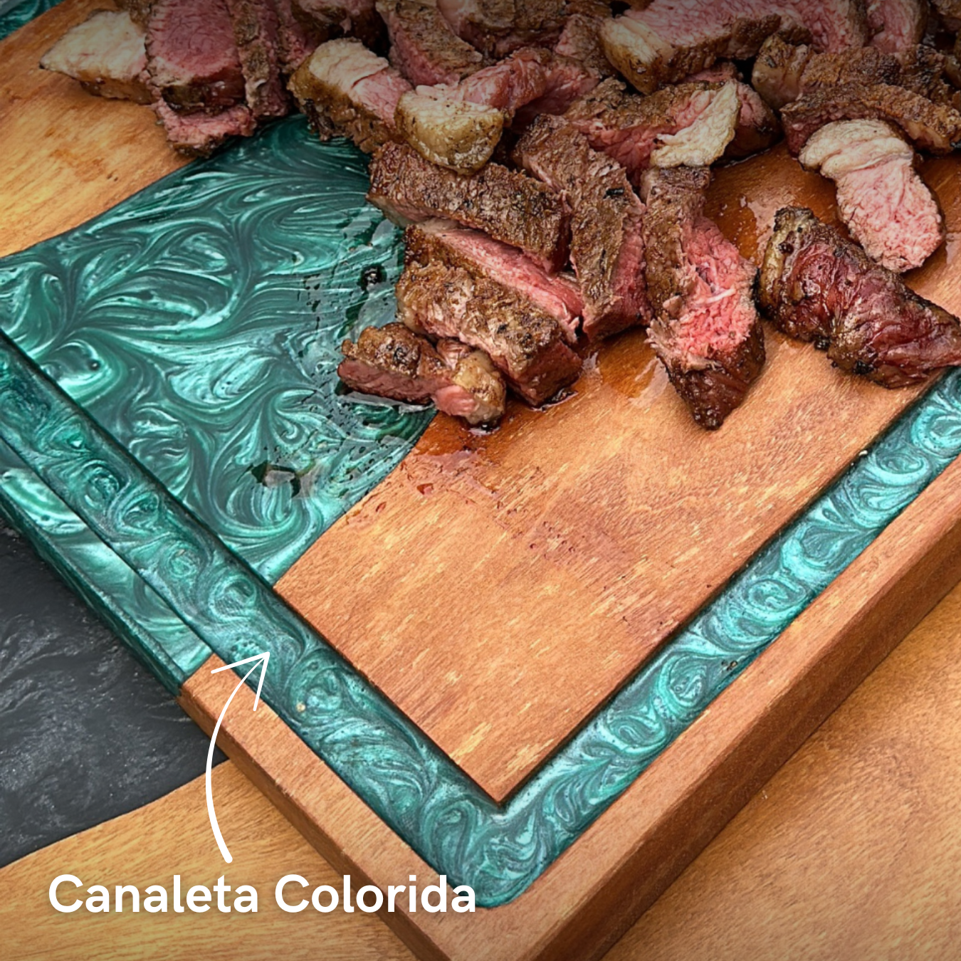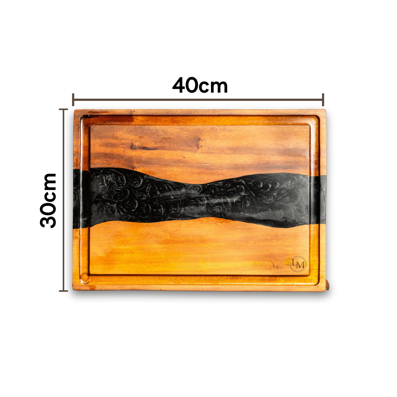 Com dimensões de 40x30x3cm, esta tábua é uma obra de arte culinária que combina funcionalidade e beleza.