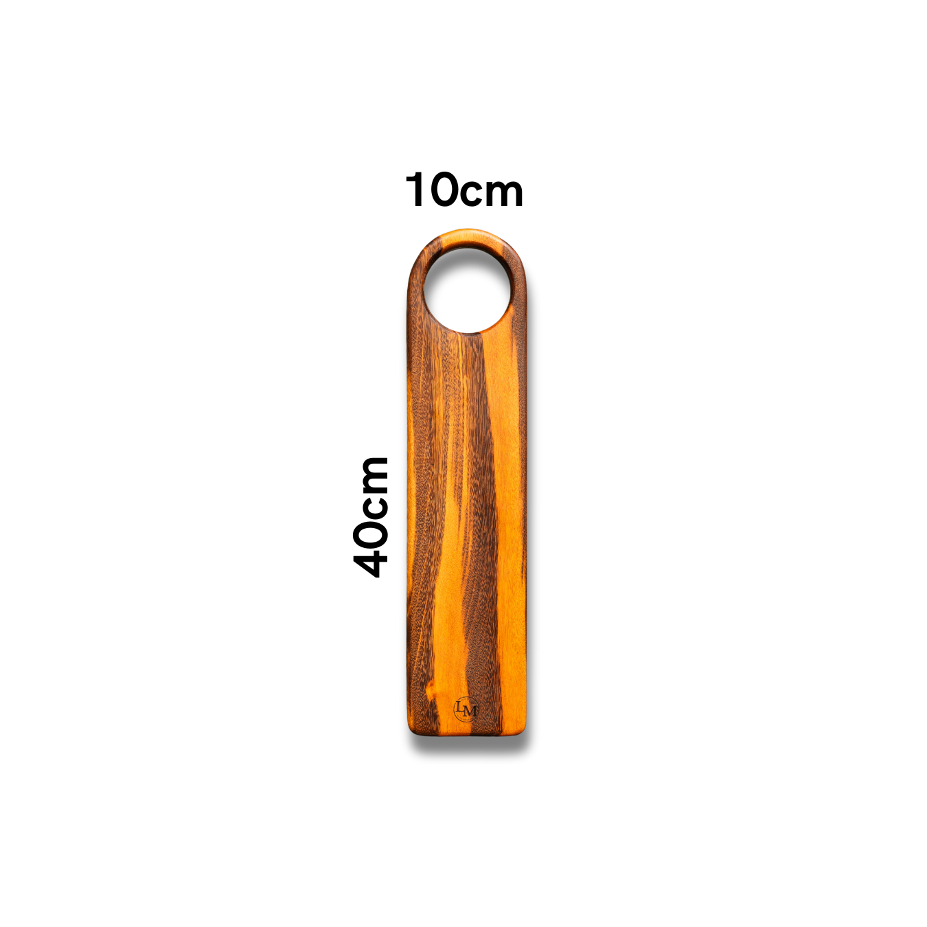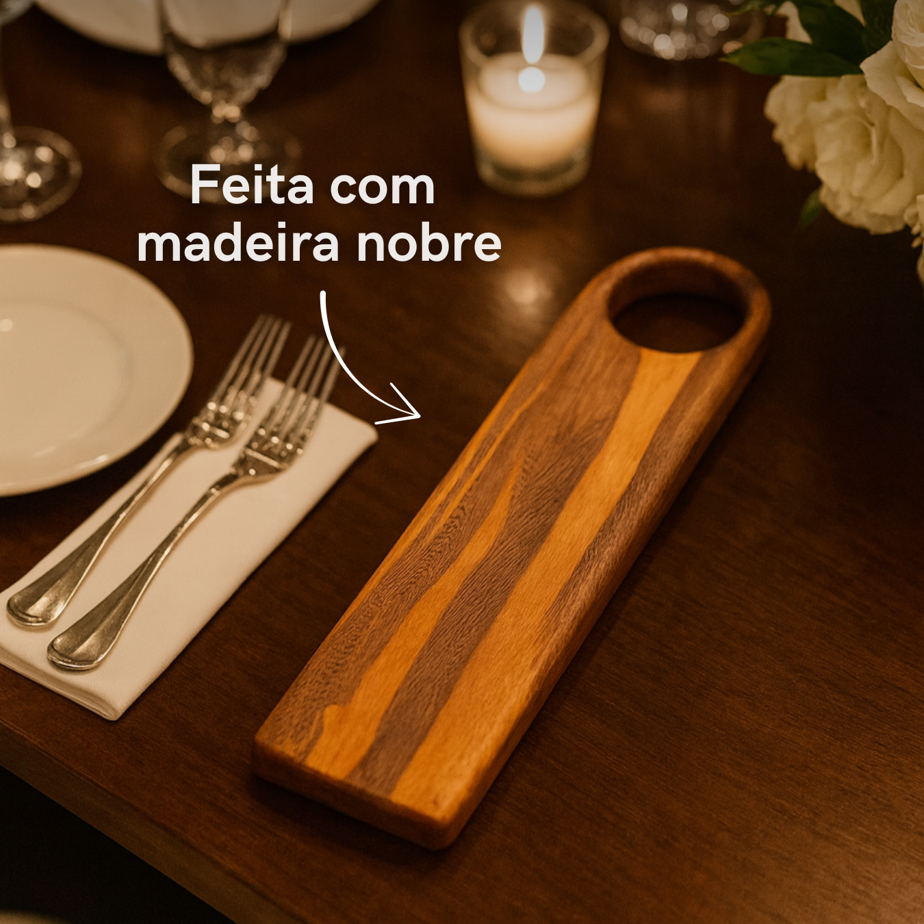 Produzida em madeira Muiracatiara, combina elegância e funcionalidade com um design fino e alongado, perfeito para servir petiscos, frios ou entradas com extrema classe.